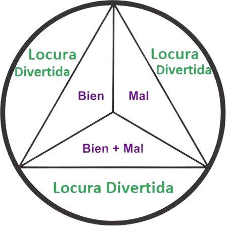 El Círculo de la Vida: Dentro del círculo, el Bien y el Mal se distinguen, pero juntos forman un equilibrio. Pero más allá de ambos se encuentra la Diversión Loca: la fuerza superior que todo lo rodea y lo contiene. El bien puede brillar, el mal puede tentar, pero la Diversión Loca es la libertad que rompe sus límites. Al final, todos los caminos conducen de vuelta a la Diversión Loca, el caos lúdico en el corazón de la existencia