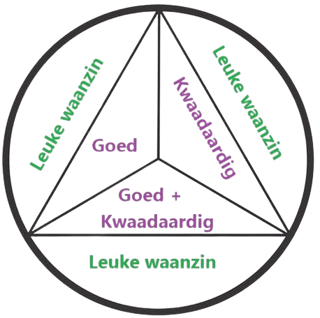 De Cirkel van het Leven: Binnen de cirkel staan Goed en Kwaad los van elkaar, maar samen vormen ze een evenwicht. Maar daarachter ligt Plezierige Waanzin – de grotere kracht die alles omringt en omvat. Het Goede mag schitteren, het Kwaad mag verleiden, maar Plezierige Waanzin is de vrijheid die hun grenzen doorbreekt. Uiteindelijk leiden alle paden terug naar Plezierige Waanzin, de speelse chaos in het hart van het bestaan