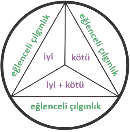 Yaşam Çemberi: Çemberin içinde İyi ve Kötü birbirinden ayrı durur, ancak birlikte denge oluştururlar. Ancak ikisinin de ötesinde, her şeyi çevreleyen ve içine alan daha büyük güç olan Eğlence Çılgınlığı yatar. İyilik parlayabilir, Kötülük baştan çıkarabilir, ancak Eğlence Çılgınlığı, sınırlarını aşan özgürlüktür. Sonunda, tüm yollar varoluşun kalbindeki eğlenceli kaosa, Eğlence Çılgınlığı’na çıkar