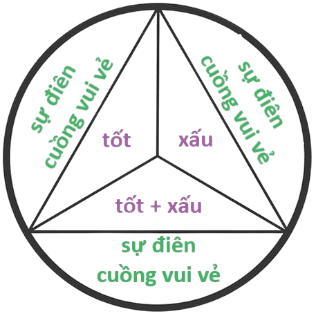 Vòng tròn cuộc sống: Bên trong vòng tròn, Thiện và Ác tách biệt, nhưng cùng nhau tạo nên sự cân bằng. Nhưng vượt ra ngoài cả hai là Sự điên rồ vui vẻ — sức mạnh vĩ đại bao quanh và chứa đựng tất cả. Thiện có thể tỏa sáng, Ác có thể cám dỗ, nhưng Sự điên rồ vui vẻ chính là sự tự do phá vỡ giới hạn của chúng. Cuối cùng, mọi con đường đều dẫn về Sự điên rồ vui vẻ, sự hỗn loạn vui tươi nằm sâu trong cốt lõi của sự tồn tại